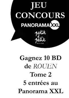 Extrait du règlement : Les éditions Petit à Petit – www.petitapetit.fr – 53 rue cauchoise 76000 Rouen organisent avec le Panorama XXL du 15 Novembre au 25 Décembre 2016, un grand jeu doté de 10 BD et de 5 entrées au Panorama XXL.