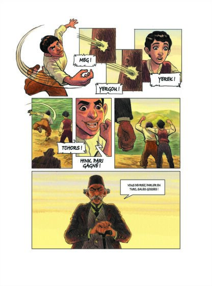 En présentant le quotidien d’une famille arménienne brisée par les déportations, la bande dessinée nous plonge avec émotion dans l’une des plus grandes tragédies du XXe siècle. Les pages documentaires, illustrées de photographies d’archives donnent à voir l’ampleur du massacre orchestré par les autorités ottomanes. Un album essentiel pour tout comprendre et entretenir la mémoire.