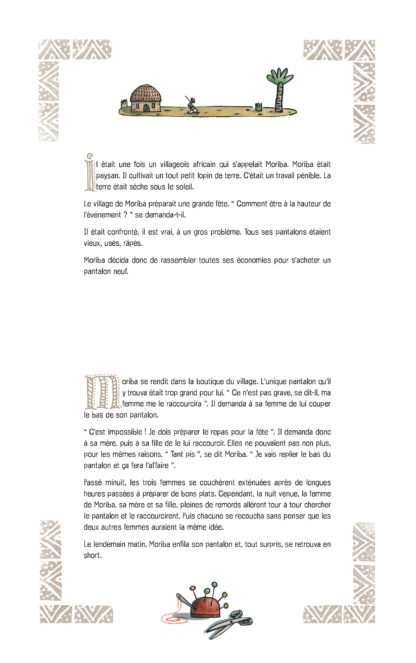 Un conte traditionnel et ancestral à la portée des plus petits. Un livre à volets pour composer à l’infinie l’Histoire du Pantalon de Moriba !
