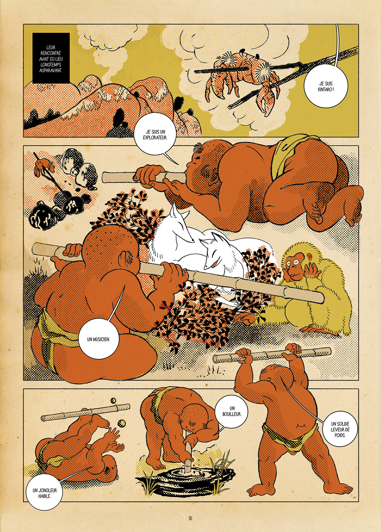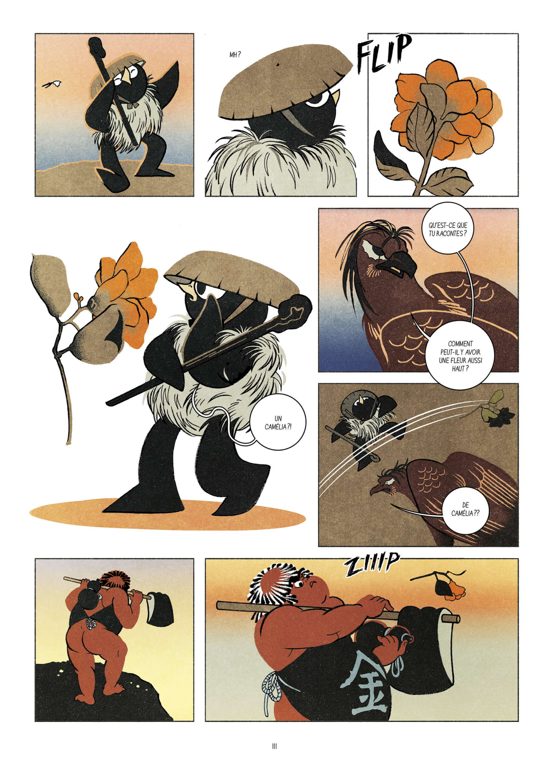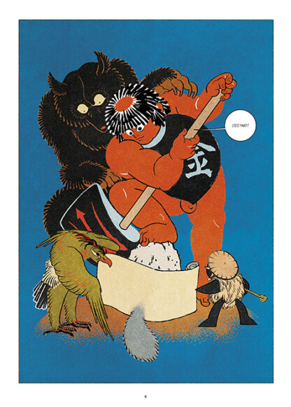 Couleurs, ambiances, références et inspirations, tout ici évoque l’art graphique du Japon des années 1800, revisité avec un style synthétique, contemporain et très personnel, qui lorgne du côté du manga.