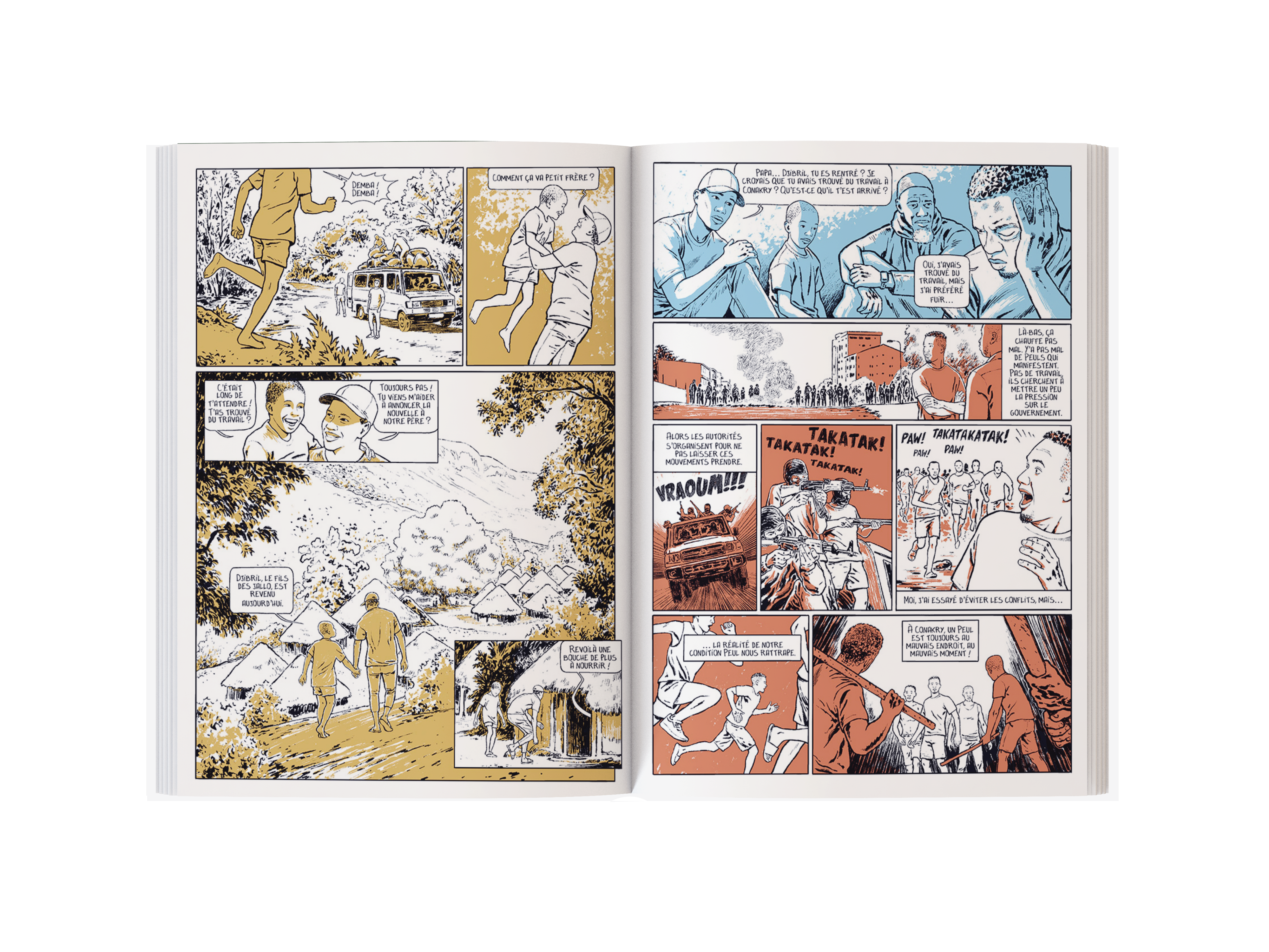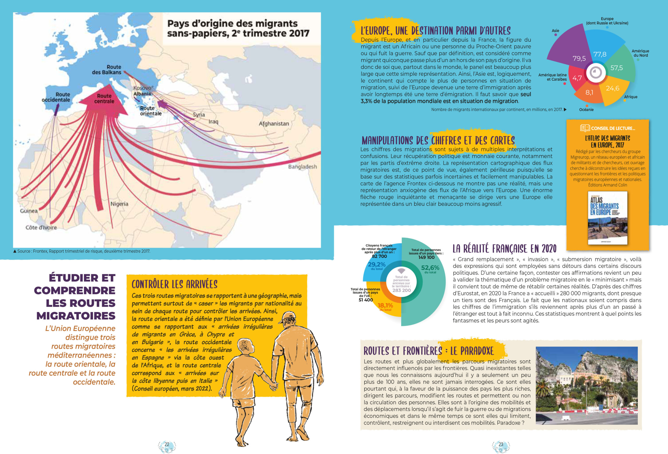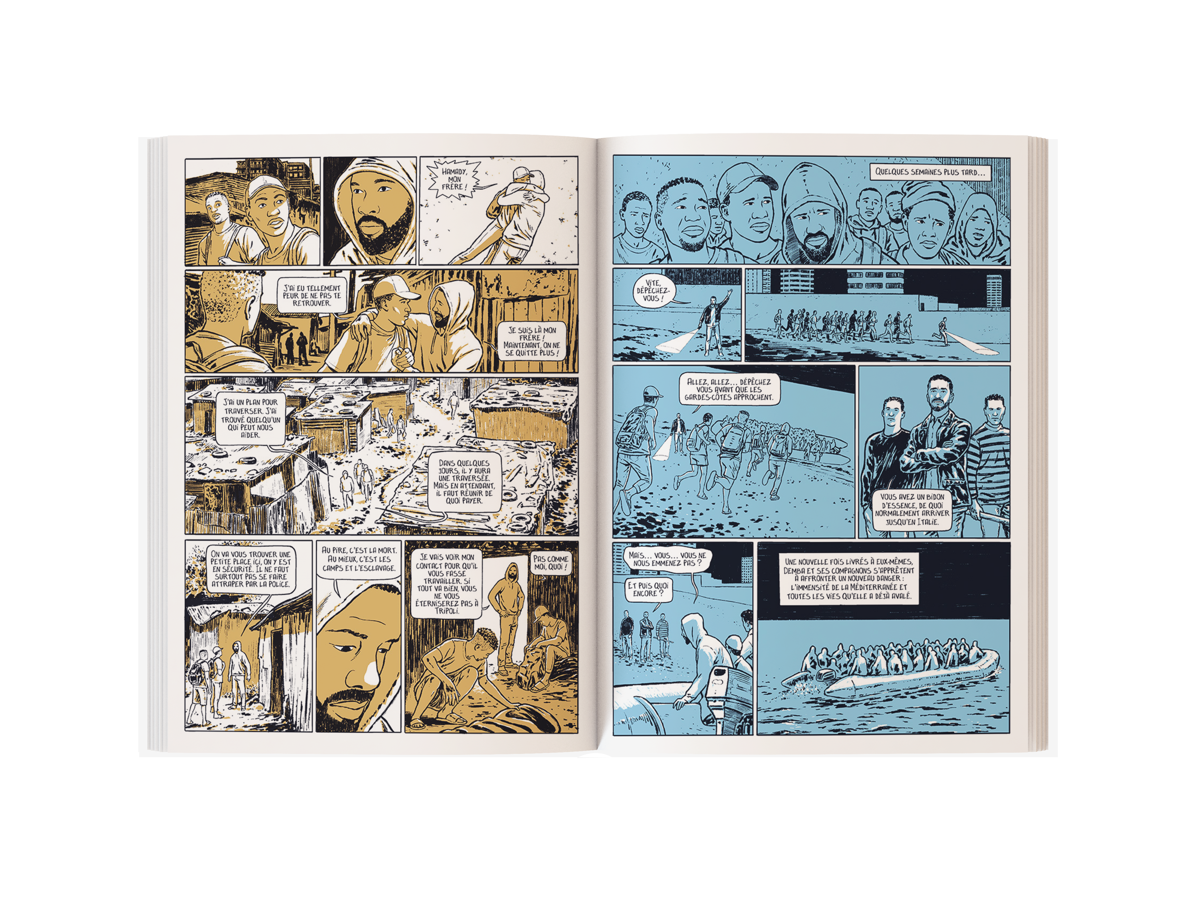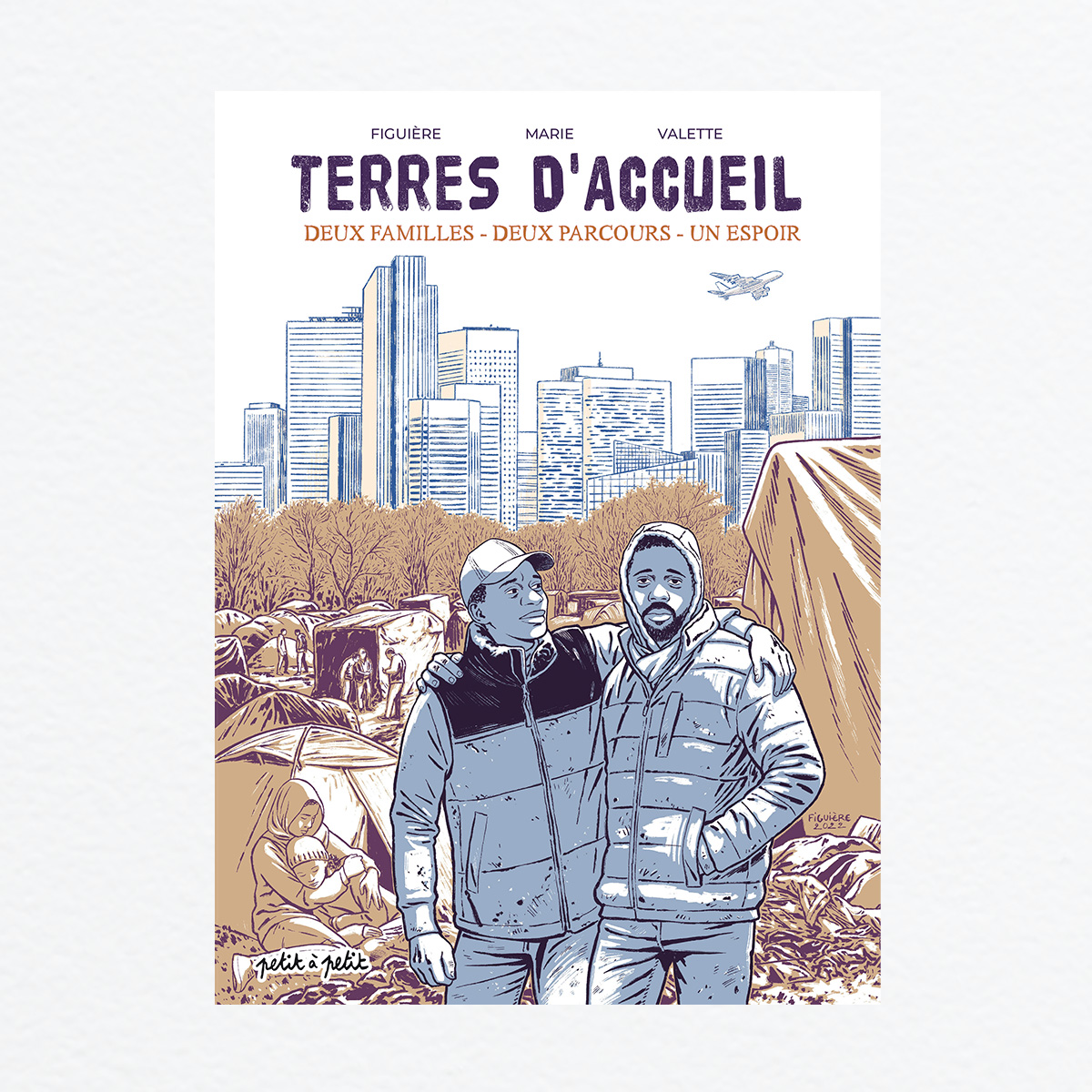 Un œil nouveau sur l’immigration dans ce docu-BD, réalisé en partenariat avec des chercheurs universitaires. Découvrez deux parcours, celui de Nahja et Hiba, réfugiées syriennes, illustré par Valette et celui de Demba et Djibril, migrants guinéens sans papiers, illustré par Samuel Figuière. Deux parcours et deux styles graphiques mis en parallèle au sein d’un même ouvrage complétés par des documentaires précis et passionnants.